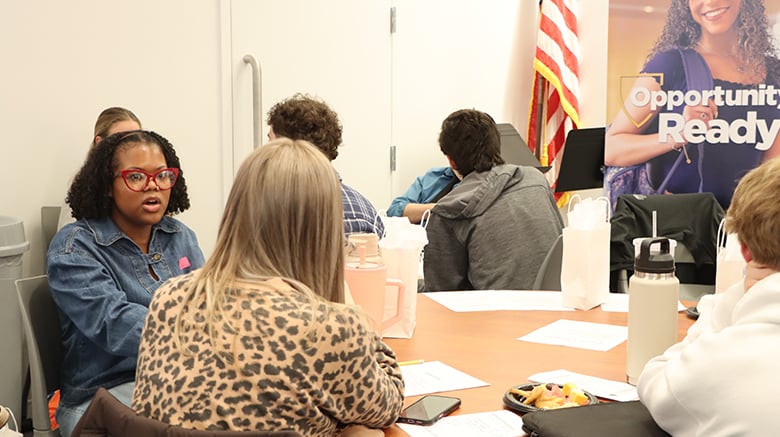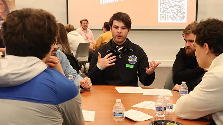 After Montemarano’s presentation, students once again broke into groups, this time based on their discipline as they were joined by alumni. Facilitated by Assistant Professor Nadia Khan-Roopnarine, Ed.D, these “alumni table talks” were an opportunity for students to ask questions and get a preview for what’s in store for them after graduating. Alumni discussed their current experiences and where they are in their career track, either as graduate school students, student-teachers, first-year teachers or working in education-adjacent jobs.