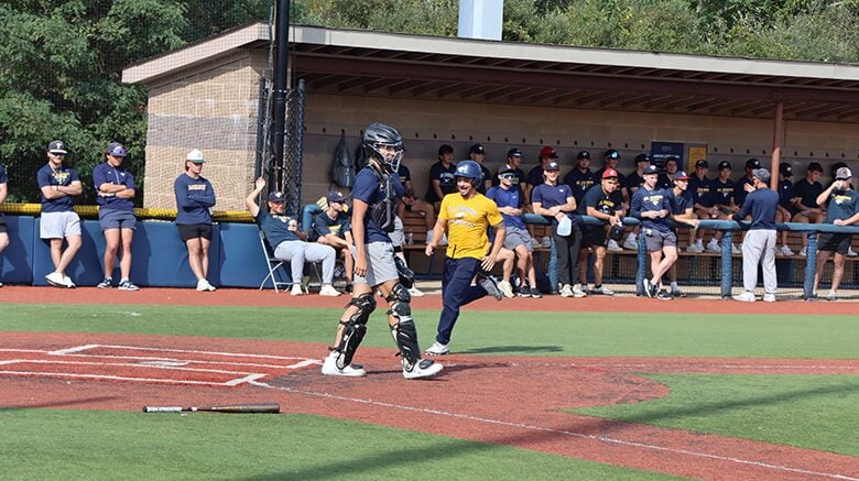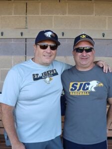 For baseball alumni Charlie Caputo ’90 and Brian Kendrick ’95, Golden Eagle Spirit Fest is a special opportunity to reconnect and reflect. “It feels like being back at home,” said Kendrick. “Playing for St. Joe’s was a great experience. I remember winning the championship back in ’94, which was a very big deal, and seeing these guys play 31 years later just brings you back. It really makes you feel young again.”