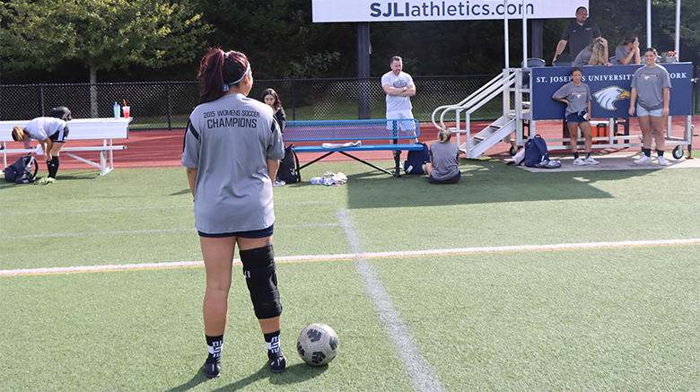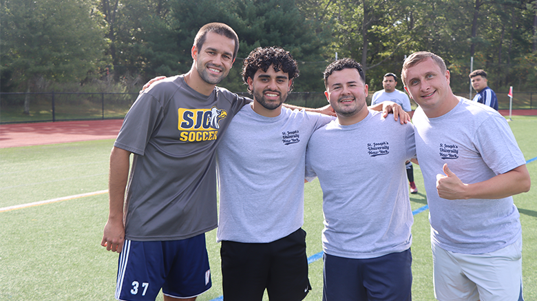 Saturday, Sept. 27 saw dozens of former St. Joseph’s University, New York (SJNY) Golden Eagles reunite at the University’s outdoor field complex for the 2025 Golden Eagle Spirit Fest. This annual event is an opportunity for SJNY alumni athletes of all ages to reconnect with their collegiate roots, lace up their cleats, compete in exhibition games, and enjoy a tailgate barbecue with friends, family and SJNY staff.