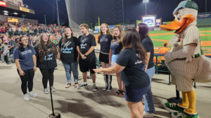 The SJNY Sharps a cappella group performed during the seventh inning stretch.