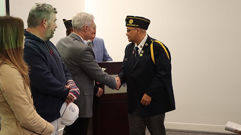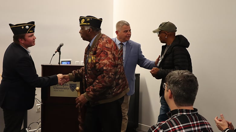 In the Student Center’s multipurpose room on the Long Island Campus, SJNY President Donald R. Boomgaarden, Ph.D. personally thanked each student and alumni veteran for their service, offering his utmost gratitude.
