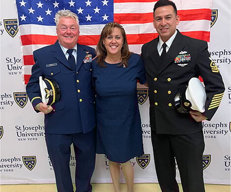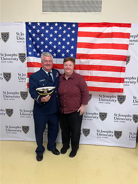 On the Brooklyn Campus, a similar ceremony took place in the Tuohy Hall Auditorium. Retired United States Coast Guard Chief Warrant Officer, James M. Mackey, the brother of Campus Ministry Director S. Marie Mackey ’84, was invited to share his 30-year experience.