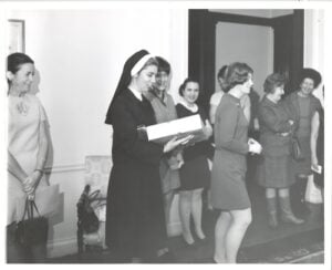 S. Mary Florence is presented with an academic gown during an executive board meeting in 1970.